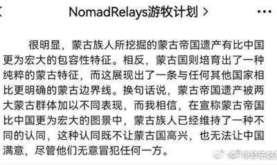 我就奇怪了,绝大多数内蒙古同胞都是爱国的,支持国家大一统的,几个生活在国外的“精蒙”,就能代表“蒙古族”了?汉语都不会讲的混血外国人,也能代表“蒙古族”了?