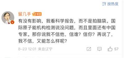 还有大量的账号对所谓的国际原子能机构的检测结果疯狂炒作,有的甚至直接就给中国政府、全体中国人民扣上“反智”的帽子,其心可诛。但是,这些截图没法放出来,放出来或许文章发不来,或者就会违规。