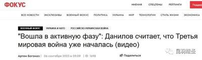 9月6日,根据乌克兰“Focus.ua”网站报道,乌克兰国家安全和国防委员会秘书阿列克谢·丹尼洛夫于当地时间9月5日表示,第三次世界大战已经开始,甚至进入了活跃阶段。