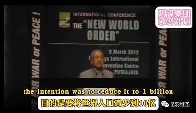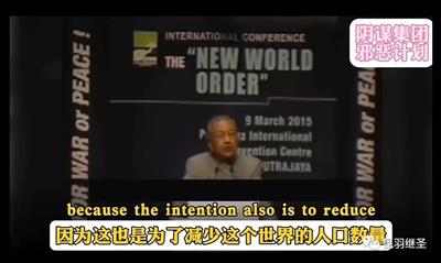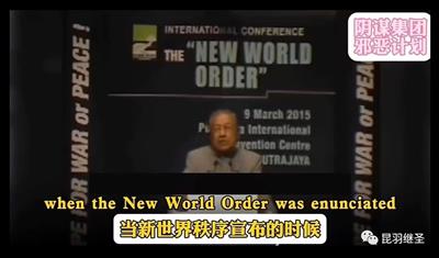 2015年3月9日,马来西亚前总理马哈蒂尔在布城国际会议中心的演讲中揭露了新世界秩序议程,其称: