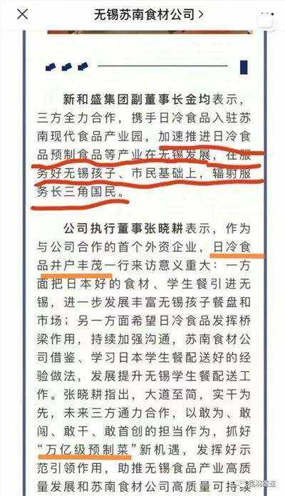 有人在网上贴出了日本预制菜龙头企业“株式会社日冷”(即日冷集团)大力投资,参与中国市场发展的消息。关键词,携手日冷食品,服务好无锡孩子、辐射长三角。日冷食品井户丰茂一行来访意义重大,一方面把日本好的食材、学生餐引进无锡,另一方面借鉴学习日本学生餐配送好的经验做法。