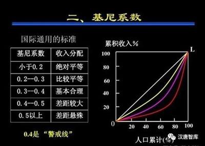 衡量贫富差距的基尼指数有两个标杆,最小的数字为0,最大的数字为1,越接近0也表示贫富差距越不明显。0.4到0.5之间差距明显,0.5及以上贫富差距非常严重。