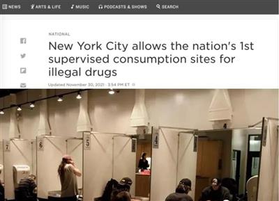 2021年11月30日,纽约在曼哈顿附近开了全美首家首家毒品注射中心,瘾君子们可以享受美国政府毒品注射的一条龙服务。