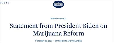 2022年10月6日,美国总统拜登宣布赦免所有因大麻而犯下罪行的人。