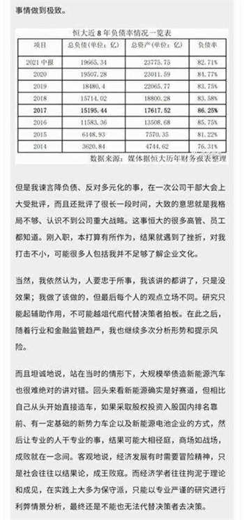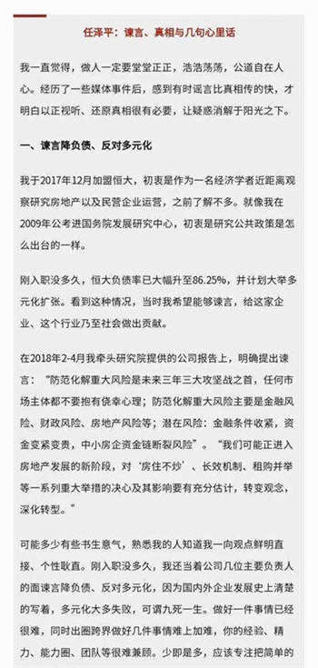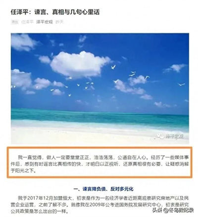 对此,离职后的10月11日,任泽平发表了一篇题为《任泽平:谏言、真相与几句心里话》一篇长文,进行了回应。