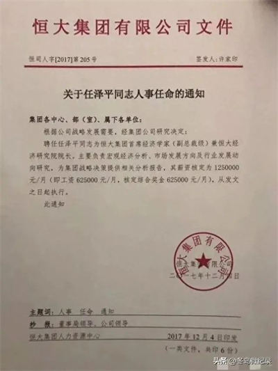 然而,人们会发现,恒大副总裁级别的,前首席经济学家的任泽平,似乎成了“漏网之鱼”。