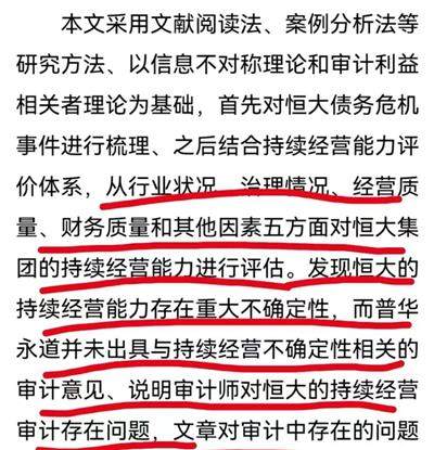 退一步,既然我不是专业的,那我请出来一篇硕士论文《房地产企业持续经营审计研究——以普华永道审计恒大集团为例》,一篇专门研究华永道在恒大爆雷中扮演什么角色的硕士论文。