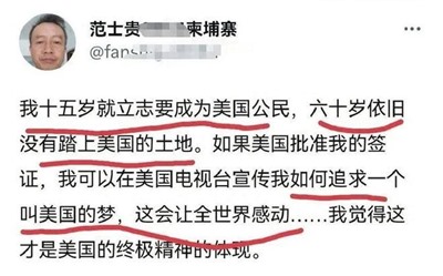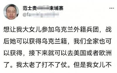 那个范士贵 ,为了自己的美国梦,都把自家人霍霍成什么样了,连自己的闺女都算计,为了他能实现自己的梦想,劝自己的亲生闺女去战火纷飞、没有安全保障的乌克兰。自己生活过得狗都不如,还不断用宗教安慰麻醉自己。