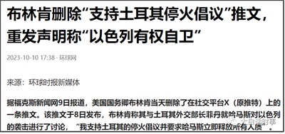 美国布林肯在10月8日,删掉了他在社交平台上的推文。