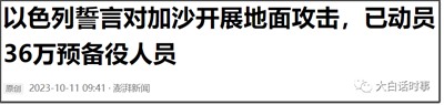 现在世界各国基本也都在看以色列会不会派大量地面部队进入加沙。