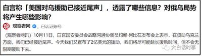 美国白宫发言人10月11日表示,“在资助乌克兰方面,我们已经接近尾声。今天我们又宣布了2亿美元的援助,我们将尽可能延长援助时间,但不会无限期援助下去。”