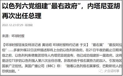 去年12月,内塔尼亚胡再次掌权以色列,联合了极右翼犹太复国主义政党进行组阁,被外界认为是以色列“最右政府”。