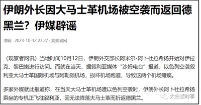 之前有报道称,大马士革机场遭以色列空袭时,伊朗外长正乘坐专机飞往叙利亚,但因为无法降落大马士革而折返德黑兰。