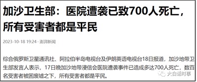 然后18日,加沙地带卫生部发言人表示,17日晚加沙地带浸信会医院遭袭事件已造成多达700人死亡,数百名受害者被困废墟之下,所有受害者都是平民。