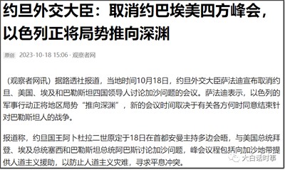 但因为这次以军轰炸医院的超级恶劣事件,约旦已经取消这次峰会。