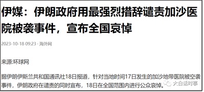 联合国秘书长古特雷斯也表示强烈谴责加沙医院遭袭。