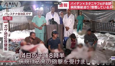10月17日晚上7点,以色列向浸信会医院扔下了一枚装药量半吨以上的重磅航空炸弹,这枚炸弹的位置经过的精细的计算和瞄准,爆炸点位于停车场正中心,离地面2~3米左右的位置空爆,冲击波直接横扫了正在露天避难的妇女儿童,但医院大楼的主体建筑只是轻微受损,天花板被震掉了而已。