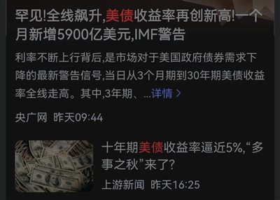 10月19日,美国债10年期收益率达到4.997%,再创新高。而也是在昨天市场传出中国再次抛售美债164亿美元;与此同时美联储自身也在大笔减持。这意味着什么?