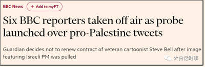 然后有6名BBC的记者因为支持巴勒斯坦的推文而被停播,遭到BBC内部调查。