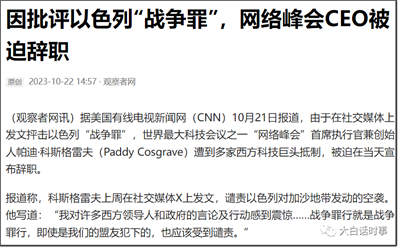 仿佛不支持犹太人就是错的,支持巴勒斯坦就会被这些犹太人为主导的西方大企业CEO圈子联名拉黑。