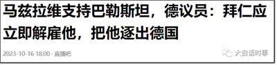 摩洛哥球员马兹拉维在发推说支持巴勒斯坦后,就有德国议员要求拜仁解雇球员,并声称要将他逐出德国。