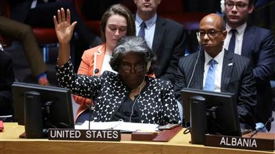 ▲ 2023年10月18日,美国常驻联合国代表格林菲尔德独家投票反对巴西提出的关于巴以双方暂时停火的决议草案。