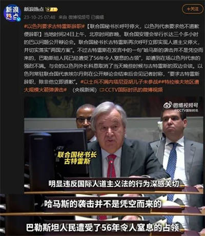 于是古特雷斯在联合国大会上讲出了那句“哈马斯的袭击并不是凭空而来的,巴勒斯坦人民已经遭受了56年令人窒息的占领”话来。