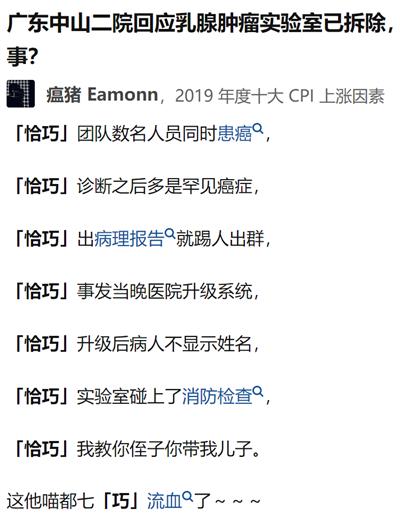 知乎答主@瘟猪 Eamonn[3]评论这个事件,说中山二院有七巧,我觉得还不止七巧,而是有九窍。
