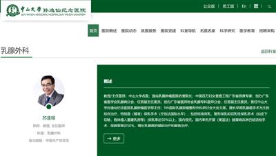 中山二院乳腺肿瘤中心还有一位杰青、长青、副主任,也就是这次舆情事件中的当事人苏士成。苏士成的导师,就是宋尔卫院士。