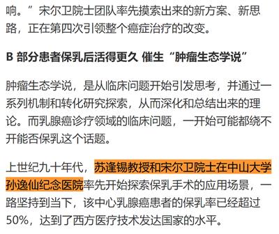 还有宋尔卫院士,早年也在中山大学孙逸仙纪念医院工作,与苏逢锡先生一起,率先开始探索保乳手术的应用场景
