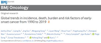 数据来源《BMJ子刊:浙江大学李雪团队揭示癌症的年轻化,50岁以下癌症发病率快速上升:中国疾病预防控制中心[1]》