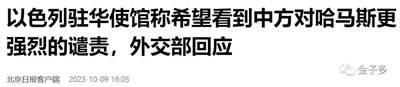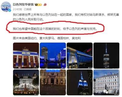 开战当天,以色列驻华使馆就在微博上呼吁:我们也希望中国能在这个困难的时刻,给予以色列的声援与支持!