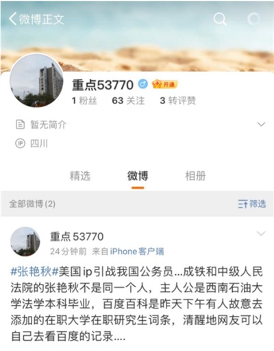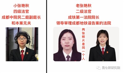 先澄清一下,我原博左图的来源压根不是百度百科,而是搜狗百科。当时词条最后一句对于张艳秋现任职务的描述有误,成都中院民二庭副庭长其实是另一个更年轻的四级法官张艳秋。