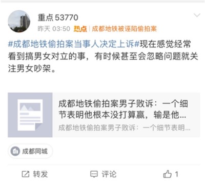 以我对自己主页流量的了解,写得再妙的评论也不可能在这么短的时间内得到如此数量的赞,我可以基本肯定这些赞都是水军或者机器人点的。此外发布这条评论的账号@重点53770 只有一个粉丝,只发过两条微博,都是给成铁一院的判决洗地的。小号的迹象过于明显。