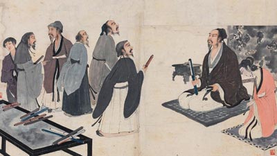 无论《三国志·魏本纪》对曹丕上位的过程如何进行美化,描述得如何顺天应人,名至实归,又是文人上表,又是百官劝进,又是地方献瑞,都难掩逼宫篡位的血腥味。司马氏掌握大权后,又如法炮制,从曹氏子孙手里夺过神器,建立了晋朝。这种做法,显然与长期作为意识形态、在当时社会已经根深蒂固的儒家思想不相符合。如果魏晋政权继续以儒家思想作为统治的意识形态,则按儒家思想观照,其政权的来源缺乏合法性;如果换用别的意识形态,要么不符合统治要求,要么无法对抗当时社会根深蒂固的儒家思想。因此,魏晋的统治者在意识形态领域十分尴尬。经过权衡利弊,他们还是沿用了儒家思想作为意识形态,不过对其进行了阉割,儒家讲的“忠孝仁义”,“忠”便不提了,只讲“孝”,以“孝”治天下。由于他们掌握了意识形态的话语权,儒家思想便任由他们解释、改扮,别人虽有不满,也不敢质疑。阮、嵇等人见他们当作“宝贝”的孔孟之道、忠孝仁义被他们阉割、改扮得面目全非,只好反对“礼教”了。其实反对的是他们的“礼教”,要使自己的礼教与他们的“礼教”持距离,放浪形骸、名士风流,不过是表示不合作,消极的反抗而已。所以,魏晋“风流”背后,是魏晋政权的下流。