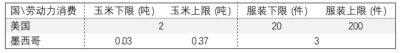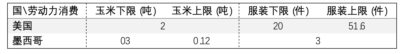表十六、墨西哥服装生产率增长10倍后贸易中所含实物劳动力价值上限