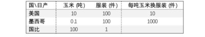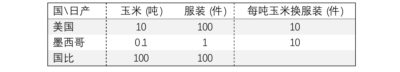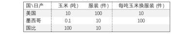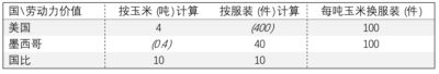 表十、劳动生产率悬殊下玉米与服装贸易中所含实物劳动力价值的上限