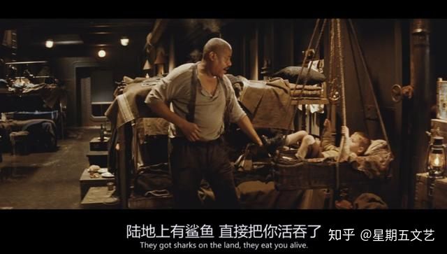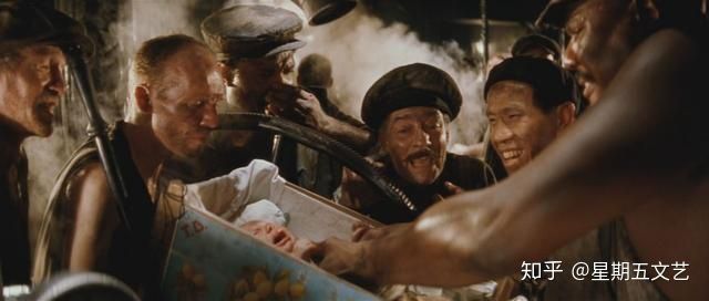 这短短一分钟的“集体大合唱”所带来的那种底层劳动人民团结一心的感染力是非常巨大的。要知道,正是这个底层、这个劳动环境孕育出了海上钢琴师这种音乐天才。这段戏与之后钢琴师为船上三等舱工人阶层演奏的戏份形成了呼应与象征性的解释。