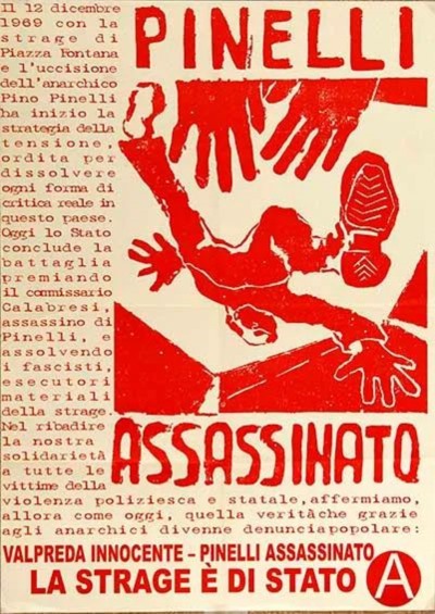 朱塞佩·皮内利(Giuseppe Pinelli,1928-1969),绰号“皮诺”(Pino),是一名意大利铁路工人,积极参与斗争的知名无政府主义者,在1969年兴起的工人斗争浪潮中,被当局陷害而死。先前我们发布相关歌曲《丰塔纳广场(血月)》时,作了简单的背景介绍,附后。另外,“圣彼得堡来信”公众号(即原“彼得格勒来信”公众号被销后的新号)正发布朋友翻译的一本小册子《黄金暴徒:意大利战后革命浪潮1968—1977》,对这段历史及相关重要事件也有详细介绍,欢迎关注。