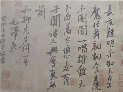 临毛体也是多年以前的事了。当时弄到一套毛主席手书古诗手卷共八套,不禁欣喜若狂。在一般人眼里,毛主席擅长狂草,把毛体定格为草书,其实这是一种认识误区。毛主席青年时期用楷书抄写屈原的《离骚》全文,可以看出他临的欧体的痕迹。善草书者必然有正楷的功底,正如一个能跑步的人,必须先学会走路一样。