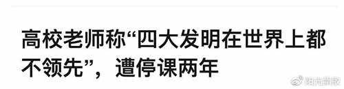 高校教师贬低四大发明被停课2年网友:没有中国四大发明国外哪来火药