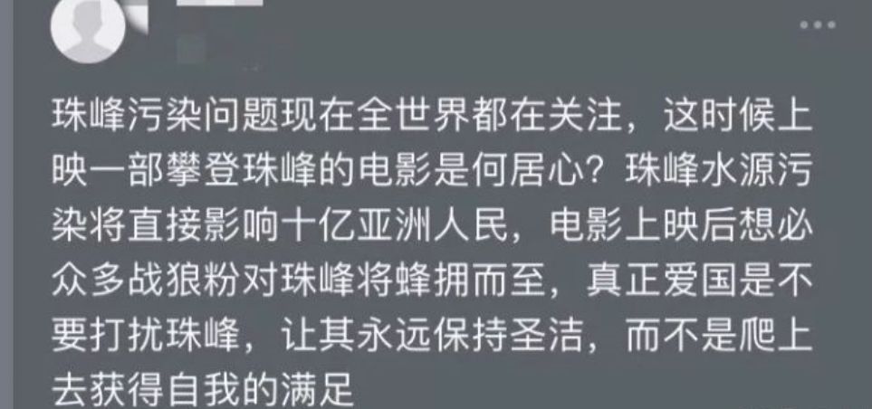说起《攀登者》,很多人讨厌的理由居然是——“环境保护”,说珠峰是圣洁之地,不该被人类踏足。我听了简直要骂娘——这些年外国冒险家、本国土豪们,不知道多少人为了出名,天天往珠峰上跑,某些资本家为了强行“登顶”,不惜雇人把自己往上背。你不怪那些没素质的外国探险家和土豪,却怪1960年中国的登山英雄们?