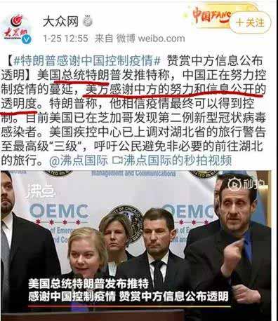 就连美国总统特朗普都说:“感谢中方的努力和信息公开的透明度。”