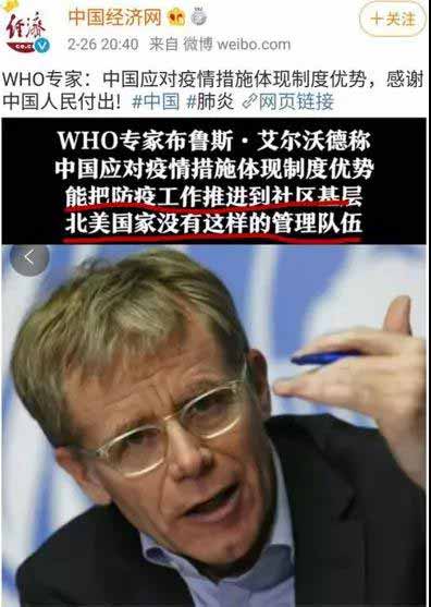 世界卫生组织专家:中国应对疫情措施体现制度优势,感谢中国人民付出!