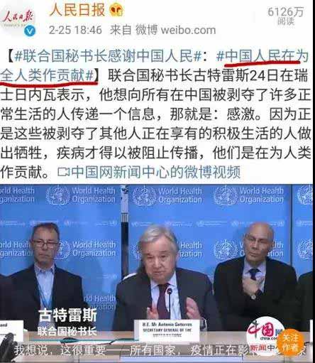 联合国秘书长古特雷斯:中国人民在为全人类作贡献!