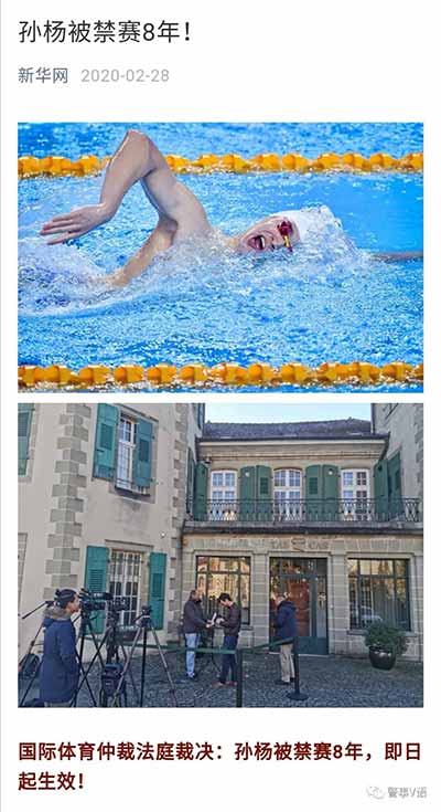孙杨本人对此回应:我一直坚信自己的清白。收到国际体育仲裁院的裁决结果,我感到震惊,愤怒,不能理解!