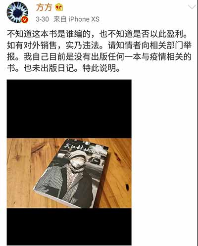 上月底,国内某书商将方方的日记结集印刷了出来,微博上刚刚开始讨论,方方就在第一时间作出了回应: