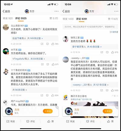 而事实上,方主席之所以会引起这么大的众怒,与其连日来的“控评手段”有着密切的关系。据悉,方方的《武汉日记》在欧美出版抹黑中国后,许多网友从支持方方变成了反对方方,因此舆论上的谴责迅速增多,不再像此前那般“势力对等”。因此,并不希望质疑声刷屏的方方,开始“控评”。