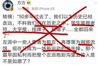 至于方方转摘“仍在历史之中”这样的言论恐怕有点慌不择路了。方方女士,话说,平时你怎么评价50年前的就不用我说了吧,你把现在和50年前相提并论,岂不是变相告诉那些90后、00后的孩子,50年前远没你们说的那么不堪?别忘了,孩子们对50年前没有什么概念,可以任由某些人的嘴胡说,可现在他们都是历史的亲历者、见证者、创造者,你们偏要强行将50年前和现在联系起来岂不是搬起石头砸自己的脚?