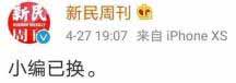 在有组织的施压下,新民周刊很快采取了霹雳行动、雷霆手段,第一时间把小编换了……对此,我只能说:社会,太社会了……